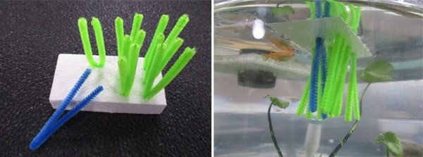 いろんなにモールで作り、メダカの好みの色を調べるなども今後考えています。
