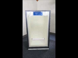 今回弊社では、たまごの落下がよく見えるように、一面を開け、透明なシートを貼った物を用意しました。