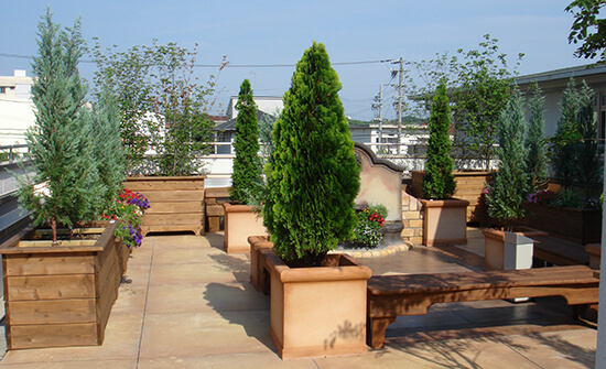 特に屋上緑化については、建物への負担軽減の他に、EPSに溝や穴などの加工を施し貯水・排水機能を持たせること、作業効率・工期短縮などの理由から、近年多く使用されています。