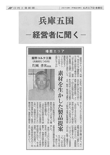 2016年6月17日、『日刊工業新聞』にて弊社についての記事が掲載されました。(※画像クリックで別窓で拡大表示が開きます。)
