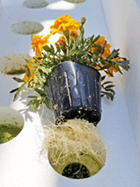 上写真のように、根が水を吸える水位になるよう浮力を調整。