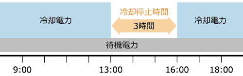 省エネ自動販売機には、7月~9月の13時~16時の間、冷却運転を3時間停止する機能が標準装備されています。