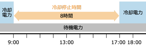 最新のモデルでは、9:00~17:00迄の8時間も冷却停止が可能な機種も出ています。
