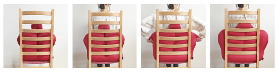 イスの背に立てかけ、もたれたまま、左右のふくらみを二回ほど「キュッ!キュッ!」と軽く引っ張るだけ。