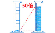 | 発泡スチロールの倍率は3倍~100倍までさまざまですが、テレビ用梱包材や食品容器(魚箱)などは概ね50倍に膨らんでいます。 つまり、体積の2%が原材料で98%は空気です。 |