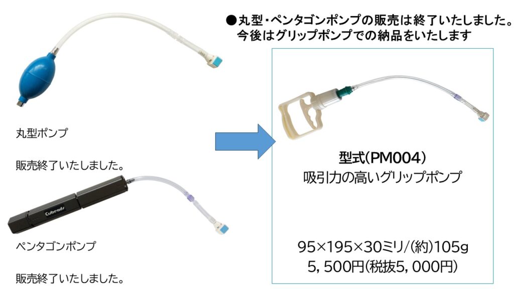 この度、イーコレ・ベーシックに付属のポンプの種類を片手でご使用いただけ、よりお使いいただきやすい仕様にするため、2月1日出荷分より変更させていただいております。