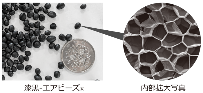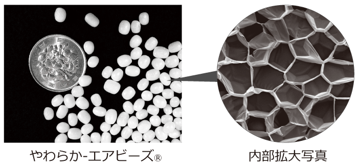 また、エアビーズ®は、顕微鏡で拡大すると、無数の小部屋が現れます。