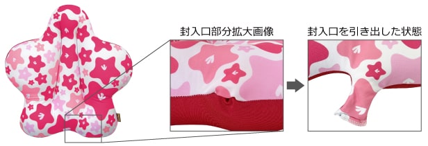 ・本品は食べられません。万一中材のビーズがこぼれた際は、お子様やお年寄りの口や目などに入らないようご注意ください。口や目に入った場合は洗浄してビーズを取り除いてください。大量に飲み込んだ場合は喉に詰まり窒息する恐れがあります。口の中に残っているものをかき出し、速やかに専門医の手当てを受けてください。