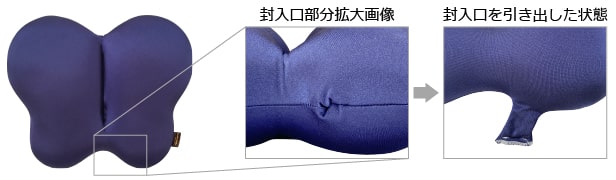 ・本品は食べられません。万一中材のビーズがこぼれた際は、お子様やお年寄りの口や目などに入らないようご注意ください。口や目に入った場合は洗浄してビーズを取り除いてください。大量に飲み込んだ場合は喉に詰まり窒息する恐れがあります。口の中に残っているものをかき出し、速やかに専門医の手当てを受けてください。