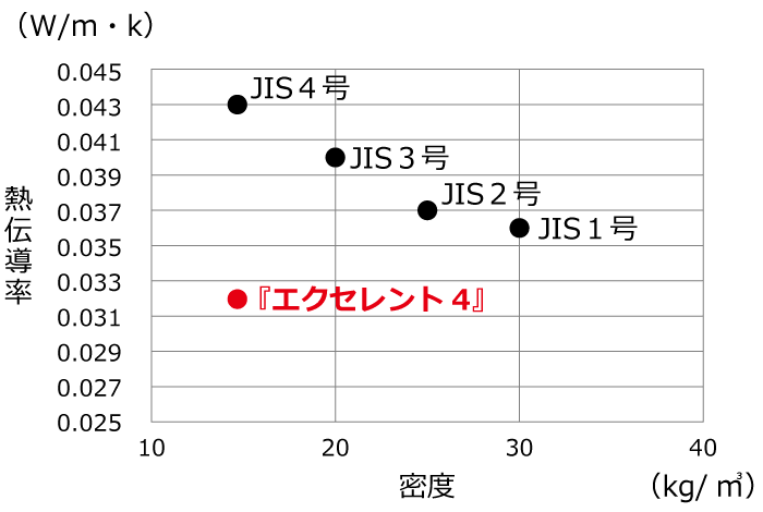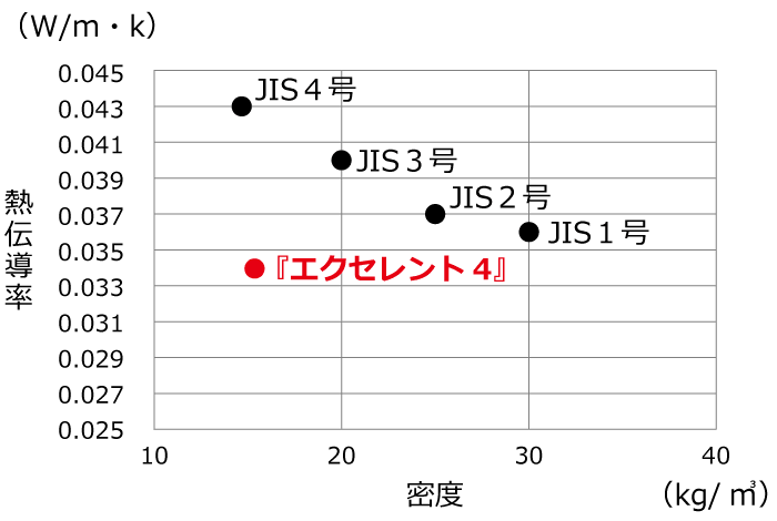 エクセレント4の熱伝導率保証値は、0.034W/m・kとなります。