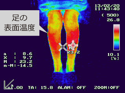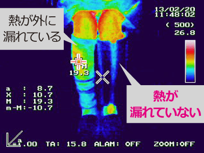 体温の漏れ出し温度を比較してみると、レグぽか・スリムの方が、ほとんど漏れ出していないという結果になりました。