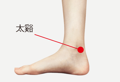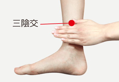 内くるぶしの頂点から指幅4本文上がったところにあります。