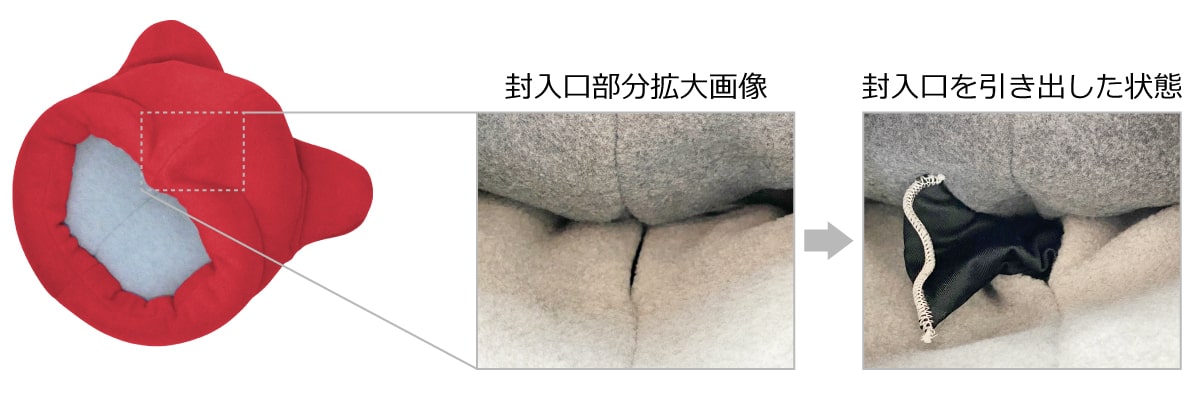 ・本品は食べられません。万一中材のビーズがこぼれた際は、お子様やお年寄りの口や目などに入らないようご注意ください。口や目に入った場合は洗浄してビーズを取り除いてください。大量に飲み込んだ場合は喉に詰まり窒息する恐れがあります。口の中に残っているものをかき出し、速やかに医師の手当てを受けてください。