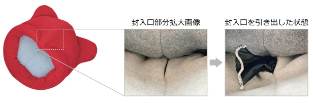 ・万一本体が破損し、中材のビーズがこぼれた場合にはご使用をおやめください。お子様やペットが誤って食べたり、目や耳、鼻等に入らないようにご注意ください。