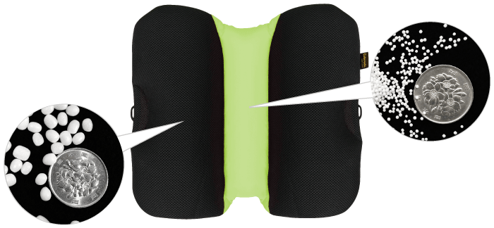 サイドの耐久性・復元性に優れた大粒のやわらか-エアビーズ®は、臀部・大腿部をやさしく支えます。
