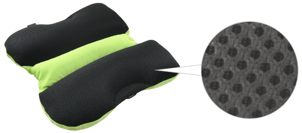 表面両サイドには、通気性の良いメッシュ生地を使用しています。