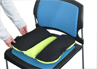 「長時間座位姿勢を取る方」、「体型とイス座面形状が合わない方」、「簡単にイスが変えられないといったお悩みをお持ちの方」にお使いいただきたい商品です。