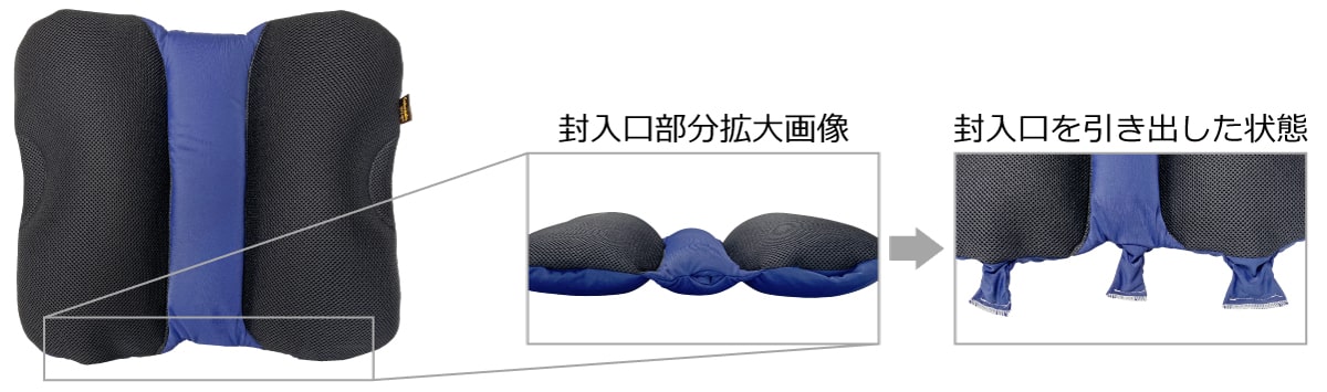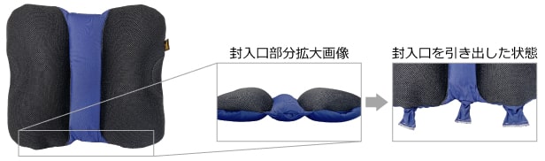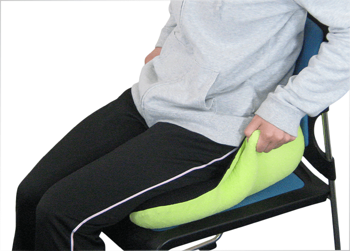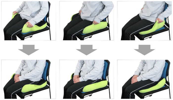 使い方は簡単で、クッションにしっかりと座っていただき、左右にある凹みをつまんで左右に引くだけです。