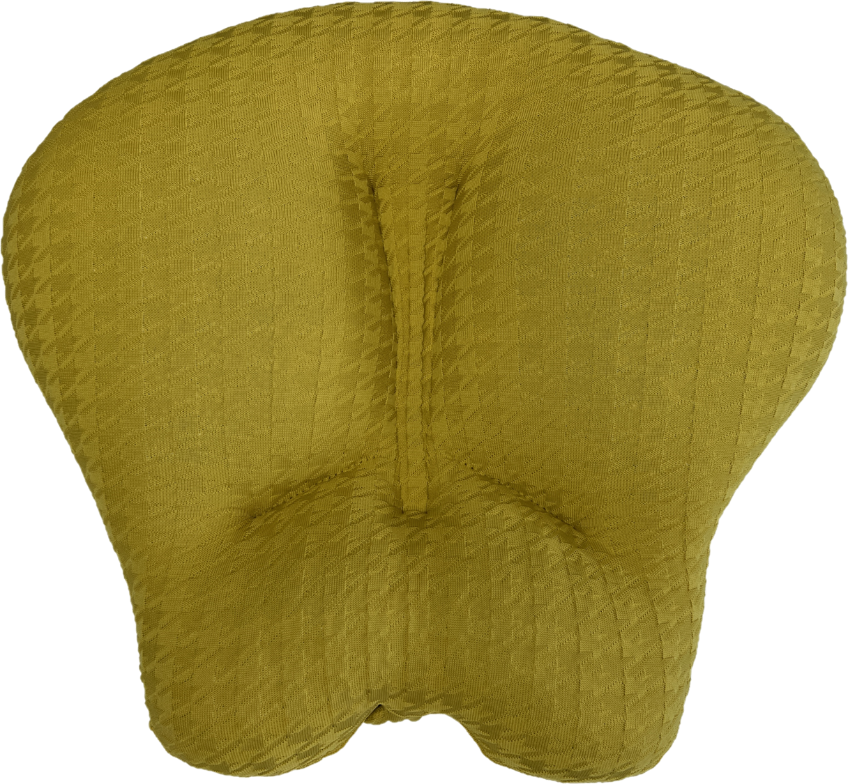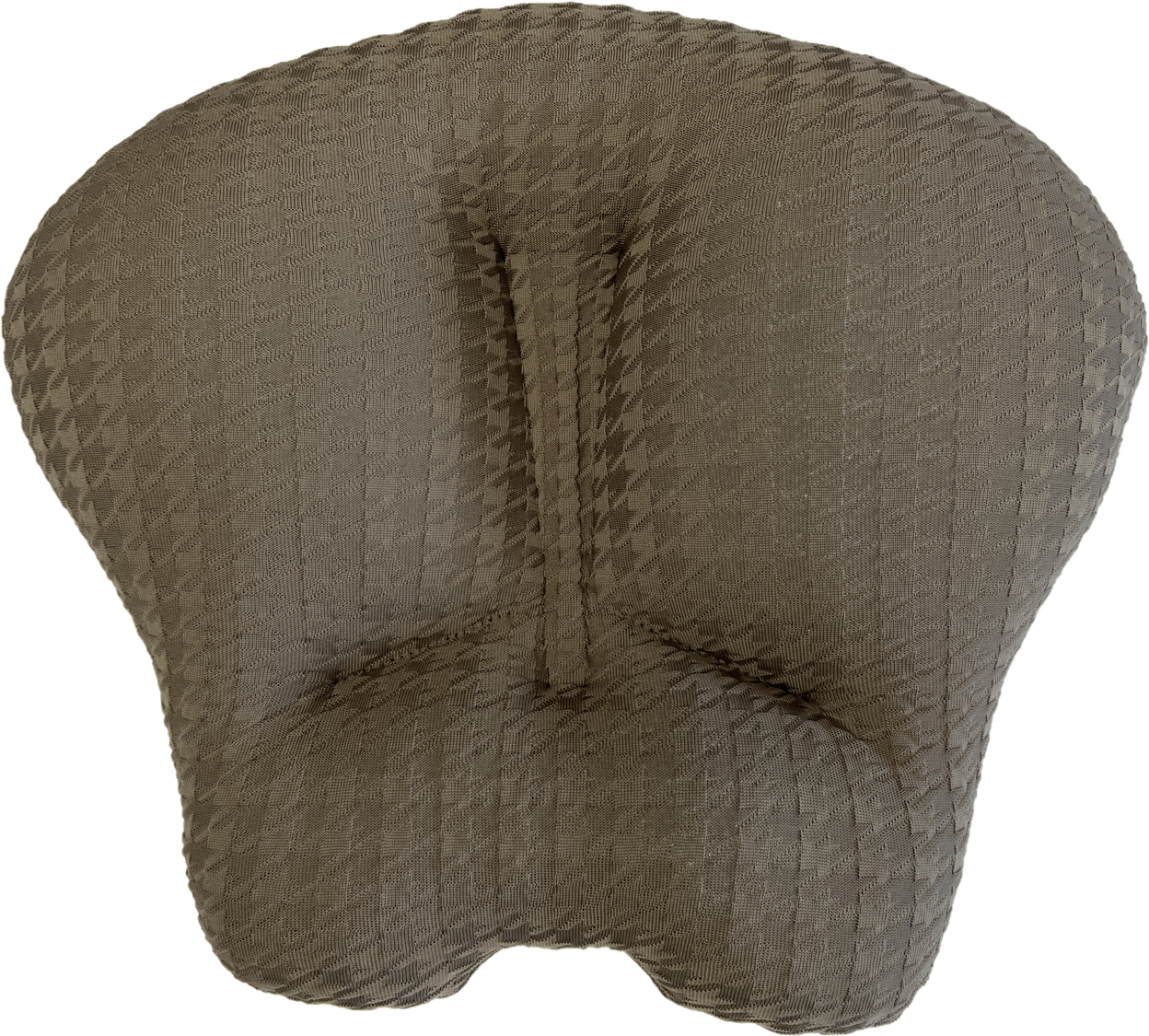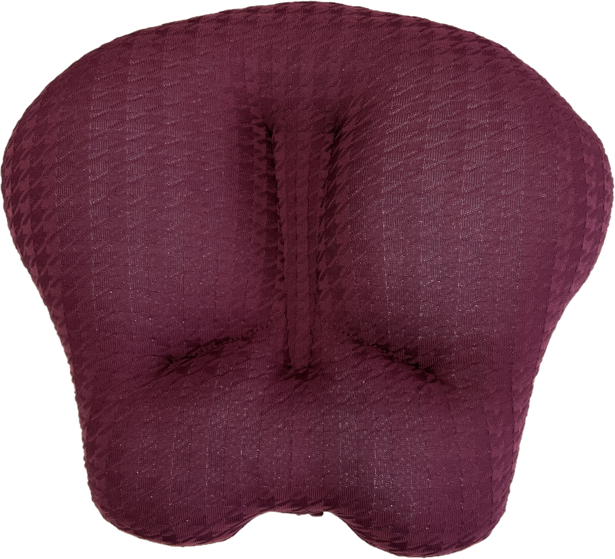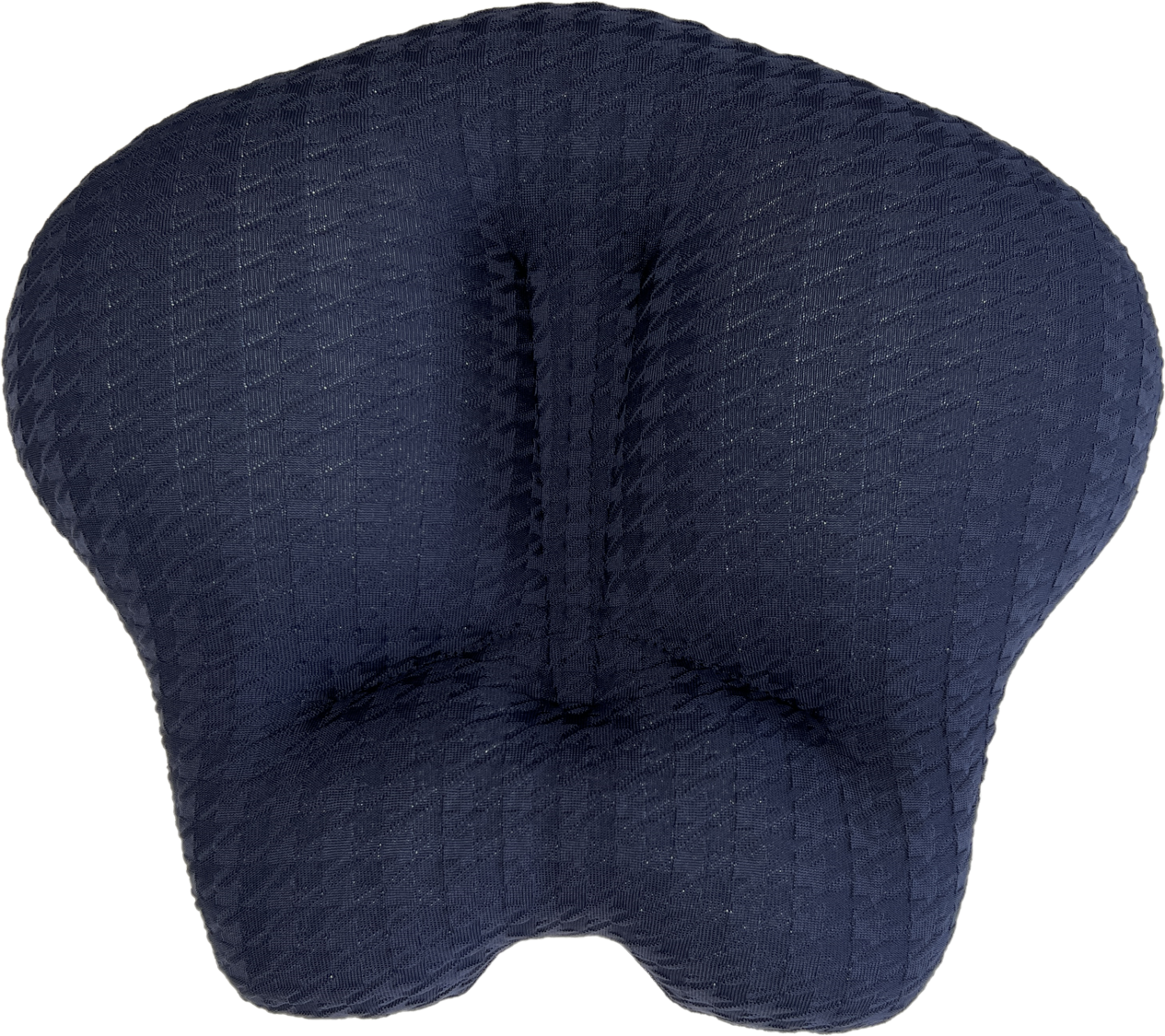 イスと身体との隙間を埋めて姿勢を楽にする扇形のクッション。