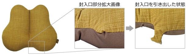 ・本品は食べられません。万一中材のビーズがこぼれた際は、お子様やお年寄りの口や目などに入らないようご注意ください。口や目に入った場合は洗浄してビーズを取り除いてください。大量に飲み込んだ場合は喉に詰まり窒息する恐れがあります。口の中に残っているものをかき出し、速やかに専門医の手当てを受けてください。