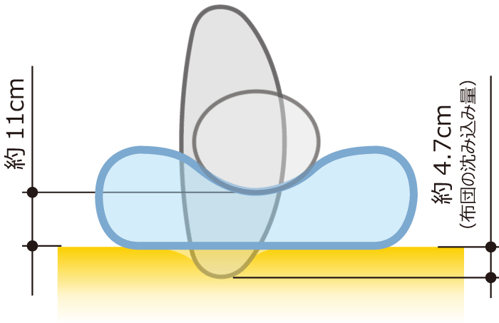 中材の超軽量-エアビーズ®と、羽毛のような触感のふんわりウェーブにより、耳を圧迫しません。